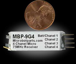 0-9G4 MBP-9G4 4-Channel Micro Receiver <font color="red" size="2" face="Arial, Helvetica, sans-serif"><b>This product has been discontinued. Please see <a href="http://www.robotmarketplace.com/products/.html">this similar product</a> instead.</b><p></font><p align="left"><font color="00ff66" size="2" face="Arial, Helvetica, sans-serif">This