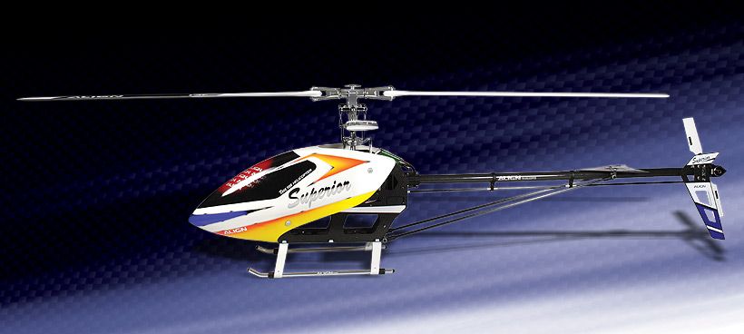 Utilizes F3C competition helicopter design concepts encompassing superior straight tracking ability, excellent static stability, resistant to wind gusts, and ultra precise control response