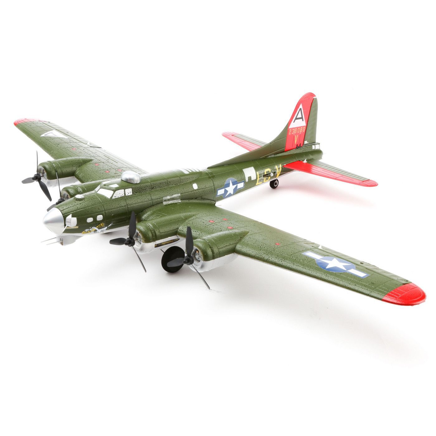 Attention to detail and respect for the scale outline of the original B-17G Flying Fortress makes this fully-assembled 1/48-scale ultra micro airplane a thrill to fly. Its three-blade propellers complement its authentic "Man O War II" trim scheme.
