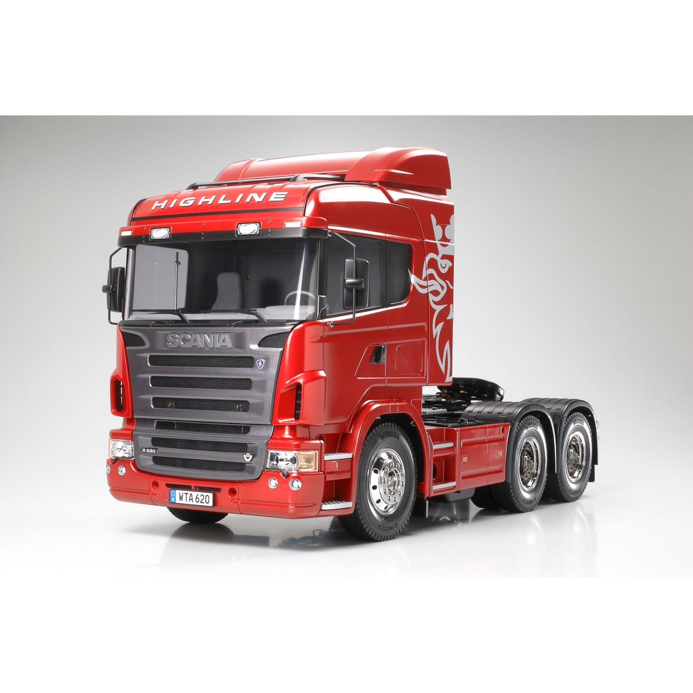Tamiya is proud to add this wonderful piece of machinery - the R620 6x4 - to the 1/14 scale R/C Tractor Truck lineup. This massive tractor truck features 3-axles and is approximately 458mm long. Beautifully reproduced cabin tilts forward separately from the fenders, just like the actual truck. The accurately modeled fenders themselves are removable for realistically depicting a low carrying load. Realistic chassis and suspension further add to the imposing form of this unique model.