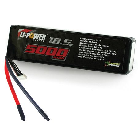 When you are looking for true power and performance look no further than our Li-Power LiPO batteries to power many applications. All our packs feature a JST HX 2.5 balance plug and silicone covered main power wires. Push it to the limit with Venom Li-Power Series LiPO packs!