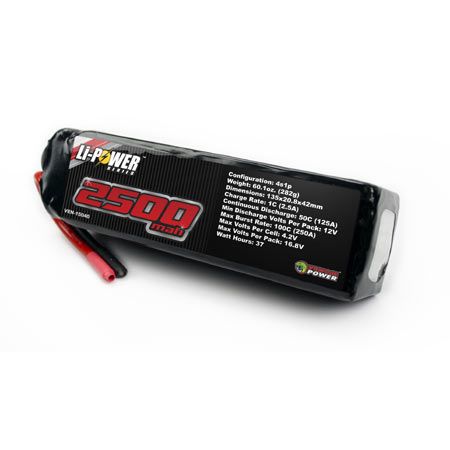 Thoroughly tested and rated at a continuous 50C, these packs are capable of 7-10 second bursts at 100C and are available in a wide variety of capacities and configurations to fit almost any power application. Venom's 50C 2500, 3600, and 5000mAh packs are perfect for airplanes, helicopters and boat applications. All of Venoms 50C LiPO battery packs feature heavy gauge wire leads.