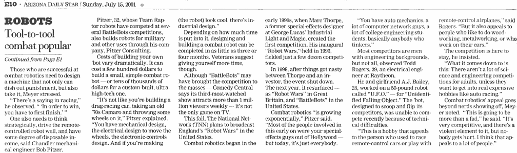 The following feature appeared in the Arizona Star on July 15, 2001: