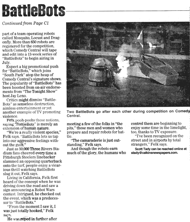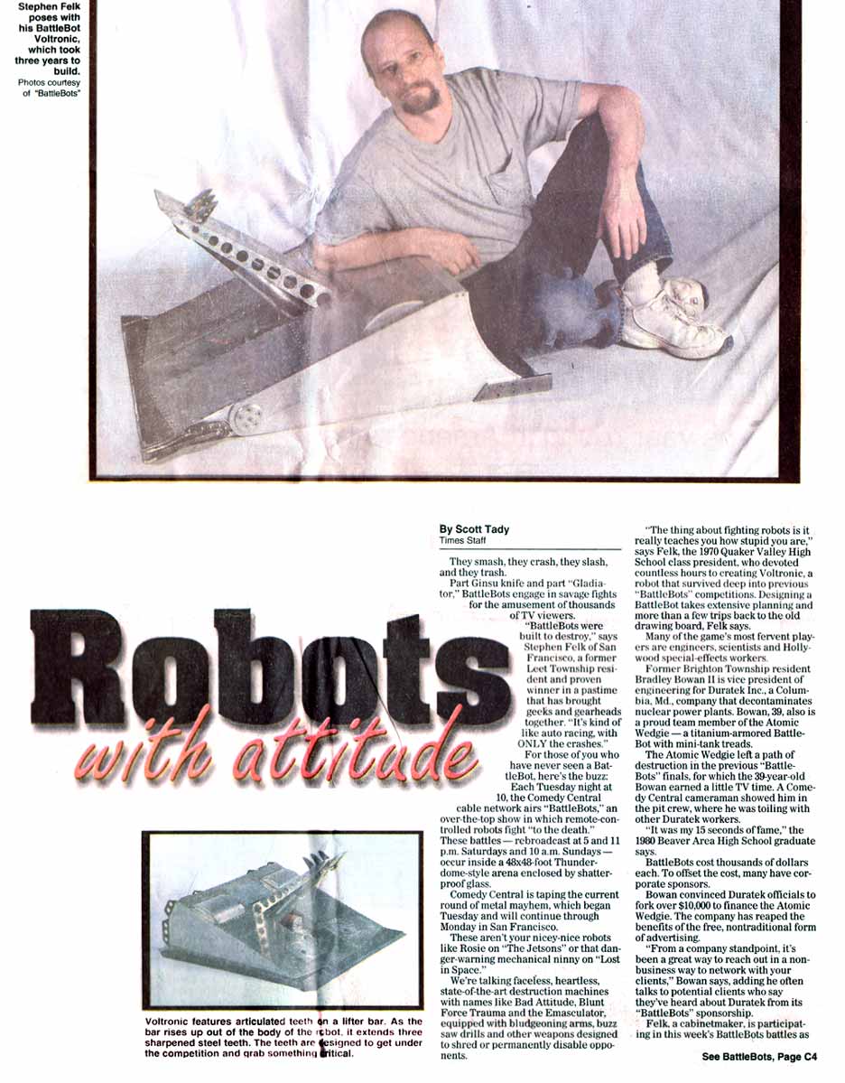 The following article appeared in the Beaver County Times in May 2001: