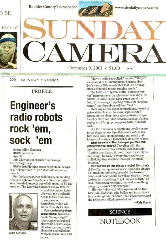 This article appeared December 9, 2001 in the Boulder Daily Camera newspaper: