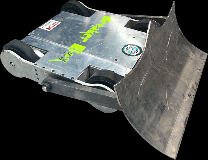 Breaker Box - Heavyweight Combat Robot In 2009, Breaker Box was upgraded to a Heavyweight (220lb) combat robot. Using the same titanium plow that was built for the original Middleweight Breaker Box, the entire rest of the robot was upgraded to the extreme. The plow arms can rotate a full 360 degrees around the robot, allowing Breaker Box to not only self-right, but escape from many sticky situations. The plow can also act as a hammer, and allows for Breaker Box's signature "spin dance" maneuver. Features: Fights (click the links to view the video, where available) ComBots Cup V RoboGames 2011