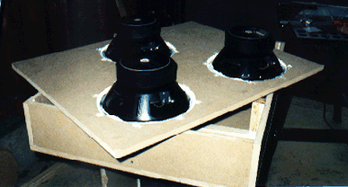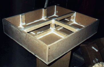 | Another view of the subwoofer box under construction. This box ended up almost perfectly within JL Audio's specs for the 12W6 requirements. |