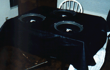alredy too-small cargo area. I came up with the idea of mounting the sub box up and out of the way against the ceiling. To do this, I would need to make the box as small as possible, which led me to choose the JL Audio 12W6 drivers for their small sealed airspace requirements. I began construction on the box, using 3/4 inch MDF and some heavier-duty wooden braces, I wanted no part of the box to flex from the massive air pressure that I would be generating from within. |