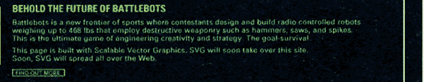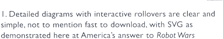 The following closeup feature of BattleBots' use of SVG appeared in the January 2001 issue of CGI magazine: