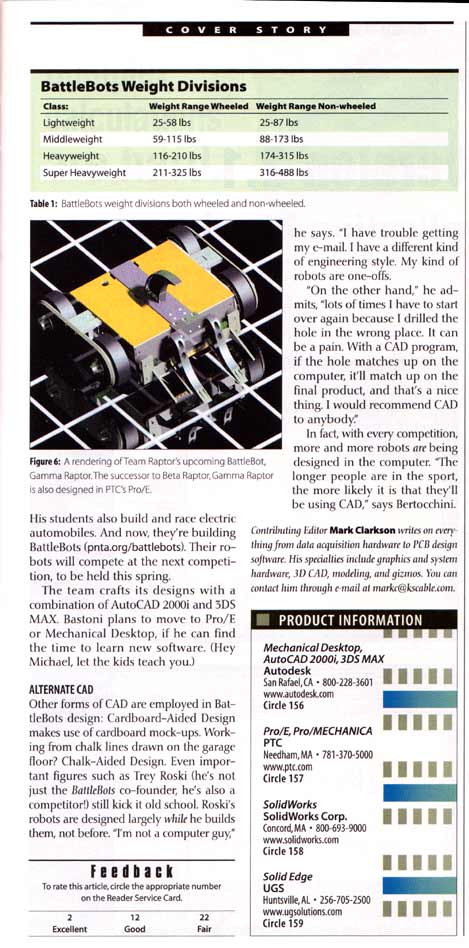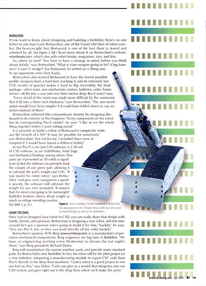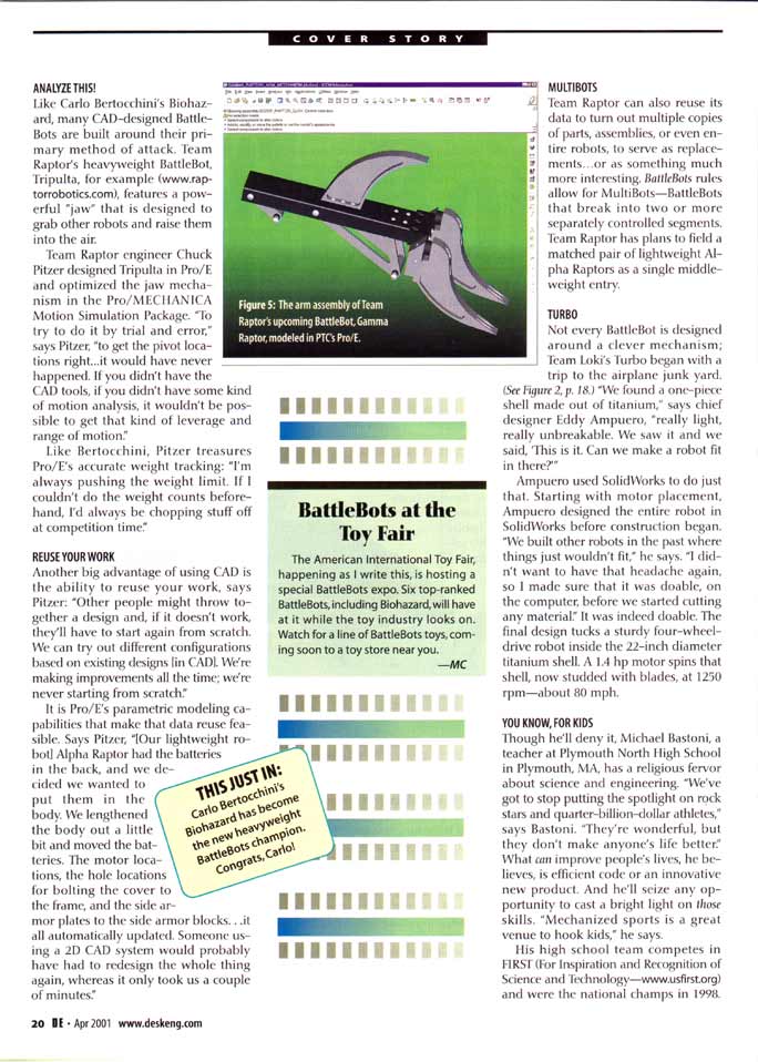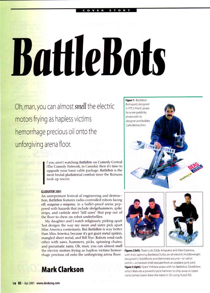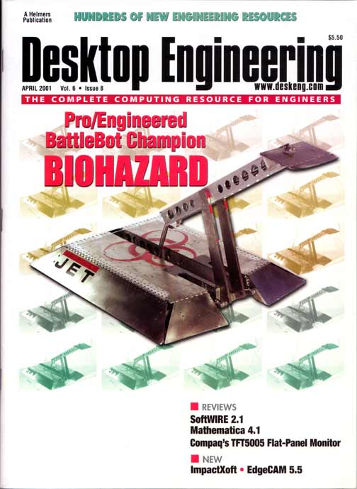 The following BattleBots article appeared in the April 2001 Desktop Engineering magazine: