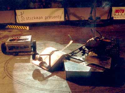 You can see why it was not possible to flip anyone over after the first impact, Herc's flipper arm got bent into a 'J' shape! |