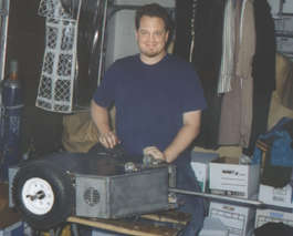 ever gets to fight, of course!) Update, Feb 2001: Since Herc 98 was never actually in battle, he was sitting around my shop, gathering dust. I had posted, jokingly, on this page "Anyone want to buy a robot?" little did I know the bombardment of emails I would get over the last year about this. After over 100 emails on this subject, I finally found a serious buyer! On Feb 25, 2001, Hercules 98 left my posession for good and will be resurrected to fight in an upcoming BattleBots event on a new team! Cool! Don't know what his new name or even his appearance will be, but watch for his premiere someday in the BattleBox! |
