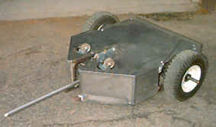 | The result was an almost-perfectly fitting armor plate for top and bottom of the robot. As you can see from these two pictures, the robot is completely symmetrical, being able to drive right side up... | ... As well as upside down! Caster wheels on both sides enable Hercules to drive reasonably well either way. As a matter of fact, I even programmed my remote control with just the flip of a switch to reverse the steering properly! |