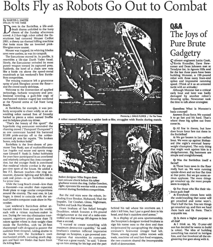 The following article appeared in the August 18, 1999 Los Angeles Times: