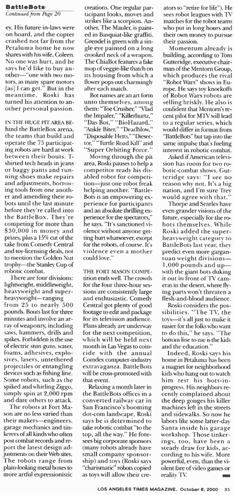 The following feature appeared in LA Times Magazine on October 8, 2000: