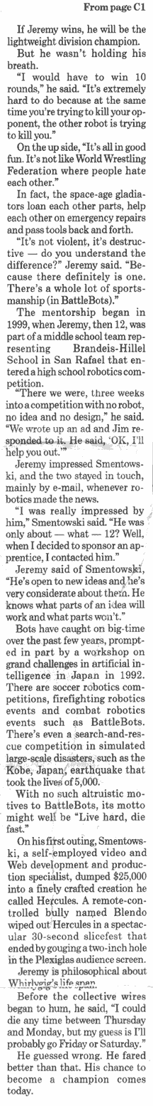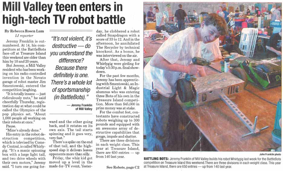 The following feature appeared in the Marin Independant Journal newspaper on May 27, 2001: