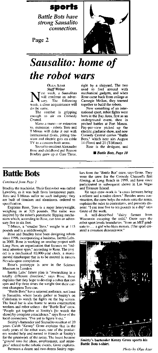 The following feature appeared in MarinScope on August 14, 2001:
