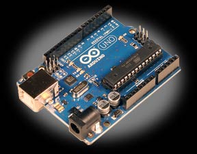 The Arduino Uno Rev3 is a microcontroller board based on the ATmega328 (datasheet). It has 14 digital input/output pins (of which 6 can be used as PWM outputs), 6 analog inputs, a 16 MHz crystal oscillator, a USB connection, a power jack, an ICSP header, and a reset button. It contains everything needed to support the microcontroller; simply connect it to a computer with a USB cable or power it with a AC-to-DC adapter or battery to get started. The Uno differs from all preceding boards in that it does not use the FTDI USB-to-serial driver chip. Instead, it features the Atmega8U2 programmed as a USB-to-serial converter. "Uno" means one in Italian and is named to mark the upcoming release of Arduino 1.0. The Uno and version 1.0 will be the reference versions of Arduno, moving forward. The Uno is the latest in a series of USB Arduino boards, and the reference model for the Arduino platform.