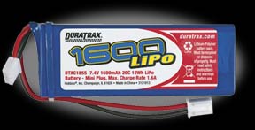 DuraTrax 1600mAh 7.4V 2S Double Cell 20C LiPo Pack - Mini Plug