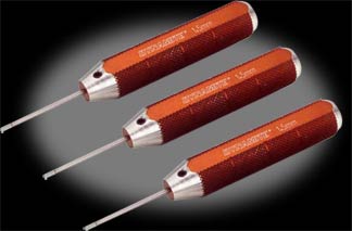 Features comfortable-grip anodized handles that are flat on one side so they won't roll off the workbench.