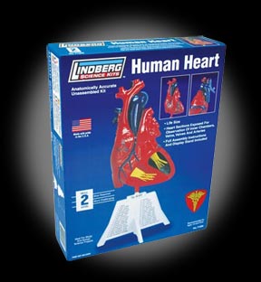 The human heart model kit is of a life-size human heart. Heart sections are exposed for observation of the inner chambers, valves, and arteries. The anatomically accurate model kit includes a display stand and full assembly instructions. |