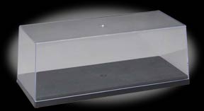 Two-piece display case with a crystal clear Polystyrene cover and a textured black base Dust resistant Interlocking base (allows for stacking of additional cases)