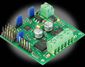 This lower-power, smaller, and lower-cost version of the TReX is the ultimate general-purpose motor controller for small motors: it has a wide operating range (5 to 24V), delivers 2.5A continuously per motor, provides current sensing on the two main channels, and it features the TReX triple interface that allows you to control motors from a serial line (RS-232 or TTL), radio control (RC) receiver, or analog voltage source such as a potentiometer. The TReX Jr Dual Motor Controller, a lower-power version of the TReX Dual Motor Controller, is a versatile DC motor controller designed to seamlessly blend autonomous and human control of small robots. The TReX Jr can control two bidirectional and one unidirectional motor via three independent control interfaces: radio control (RC) servo pulses, analog voltage, and asynchronous serial (RS-232 or TTL). Using the compact MC33887 motor driver allows for a single-board design that reduces cost while maintaining a small package. As an added benefit, the use of the MC33887 motor driver allows operation to 24V. The TReX Jr uses five input channels to receive the RC or analog control signals. When operating in RC or analog mode, the five channels function as follows: * Channel 1: motor 1 speed and direction or, if in mix mode, turn left/right The serial interface can switch instantly with one of the other two interfaces, allowing mixed autonomous and remote control. For example, a robot could be configured to run autonomously most of the time, but a human operator could override the autonomous function if the robot gets stuck or into a dangerous situation. If the serial mode is selected as the primary interface, high-resolution measurements of all five channel input signals (be they RC pulses or analog voltages) are made available to the autonomous robot controller, allowing for complex and unlimited mixing of operator control and sensor input. For example, the TReX would be a great motor controller for a remotely controlled balancing robot. RC/Analog control features Options accessable through the serial interface Safety features Note: The TReX Jr does not require use of the serial interface to function; it will work right out of the box as an electronic speed control (ESC). You will not have access to the full suite of features the TReX Jr provides if you do not make use of the serial interface, though.