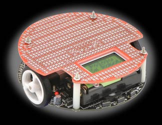 This kit gives you everything you need to add a second level to your 3pi robot. The red printed circuit board has cutouts that let you view the LCD below and make it easier to reach the power button, reset button, and programming header. This kit includes a round printed circuit board (PCB) with holes spaced on a 0.100in. grid, one extended 2x7 male header, two extended 2x1 male headers, a 2x7 female header, two 2x1 female headers, four 7/8in. nylon spacers, four 1-1/4in. screws, and four nuts. The expansion PCB matches diameter of the 3pi chassis and mounts just above the tops of the wheels using the four included screws and spacers. Once assembled, the PCB has electrical connections to the base that allow you interface your own electronics with the 3pi robot, which is sold separately. These connections give you access to the ATmega168's free/jumpered pins, as well as to the three on-board voltages: VBAT (battery voltage), VCC (regulated 5V), and VBST (regulated 9.25V that is supplied to the motors). Additionally, the expansion PCB connects to the base's power button and battery charge port, allowing you to add your own power buttons and charge ports. This expansion kit's PCB has cutouts that allow you to view the LCD below and access the power button, reset button, and ISP programming header. The expansion PCB is designed to provide plenty of prototyping space for your components. It has room for one 0.6in. 40-pin DIP (dual in-line package) component, such as the ATmega32, or for numerous smaller DIP components. The prototyping space extends all the way to the edge of the PCB, allowing you convenient points to mount a variety of sensors such as bumper switches and range-finders. The silkscreen shows how the pads are connected; the electrical connections are on the bottom side. You can cut the copper traces on that bottom side (with a sharp knife or a small rotary tool cutoff wheel) if some of the pre-made connections interfere with your desired layout. |
