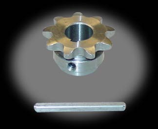 The 1/2 in. bore of this 9-tooth sprocket works with all Ampflow motors except the A40-300. The sprocket works with #35 pitch roller chain and it comes with the a 1/8 in. key. |