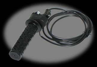 Perfect for electric bicycles/motorcycles, this twist-grip throttle uses a 5K pot. A 90-degree twist gives zero to full speed (0-100% of pot travel). It is fully compatible with all the 4QD speed controllers we sell. The tube clamp fits a 22mm diameter tube. The cable supplied is 1.8m long, 3 core 16AWG wire. |