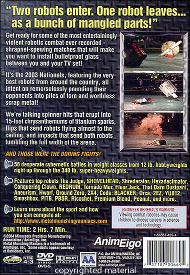 | Metal Munching Maniacs: 2003 RFL Nationals DVD Part# ANIM-MMM03NAT |