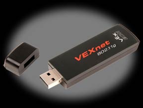 The VEXnet USB Adapter Key provides 802.11b/g wireless to the next generation VEX Robotics products. Connect a pair to your VEXnet Joystick and your VEX Cortex Micro Controller for new, wireless control. Works with the VEXnet Upgrade. |
