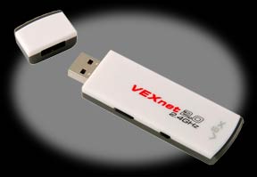The VEXnet Key 2.0 provides wireless communication between VEX Microcontrollers and VEXnet Joysticks. This key utilizes the new VEXnet 2.0 communication protocol over a custom 2.4GHz radio. The VEXnet Key 2.0 is a functionally identical replacement for the current VEXnet key. However, a link cannot use a first generation key on one side and a VEXnet Key 2.0 on the other side of the link. Features Note: The VEXnet Key 2.0 requires VEXnet Firmware v4.0 or higher on both the VEX Cortex Microcontroller and the VEXnet Joystick. This version includes support for both new and old keys. |
