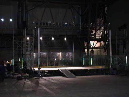 On February 15, 2001, a small group of robot builders from the San Francisco area were invited to the set of CBS's Nash Bridges TV show for the taping of an episode called "Blood Bots" where robots are used to commit crimes. It was fun, check it out: Can you believe they hauled half the BattleBox down to the studio just for this? Yep, they set up the arena just for a few shots in the show. here it is, one side is completely open, no wall, so the camera could get a perfect view of the bots inside. |