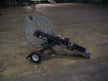 | Here's Voltronic before getting into the arena to go against his 'opponent' for the shots of the battles- Toro- who happens to outweigh him by 1.5 times! Poor Voltronic spent more time in the air than on the ground, thanks to Toro's massive pneumatic flipper. | ![]() |