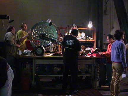 | Here's a quick shot right before they started taping the shot with Nightmare in it. They had him lifted up on the workbench like they were working on him. | ![]() |