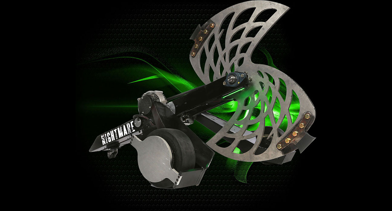Nightmare is a 250 pound robot that competed in the 2015 & 2016 BattleBots TV Show on ABC Nightmare factoid: Nightmare is the only BattleBot to appear in EVERY televised BattleBots event, starting in 1999! |