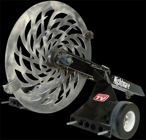 This Nightmare didn't look much different than his last version, but deep down inside, he was rebuilt once again. New disc (CNC Machined this time, ain't it pretty?), Newly designed teeth with 'side rippers', new electronics, tires, and armor. |
