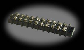 0-090-850 10-Row Barrier Strip <p><font color="00ff66" size="2" face="Arial, Helvetica, sans-serif">Double row barrier strip made from heavy-duty thermoplastic. 20 amp current rating. Dimensions: 5-1/16" x 1-1/8" x 1/2". Screws are a #6 fine thread. ~0.325" spacing between vanes (dividers). 4 mounting holes: ~5/32" dia. </font></p>