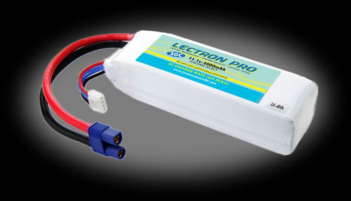 This 3 cell 3000mAh 30C lipo is the same size as a typical 2200mAh lipo but will provide you with nearly 35% more flight time! It includes an EC3 connector on the discharge leads, perfect for the Blade 350 QX and 450, Parkzone T-28 Trojan, F-27Q Stryker, Extra 300, Spitfire, and F4U-A1 Corsair, plus tons more models! It is rated and has been tested at 90 amps continuous discharge.