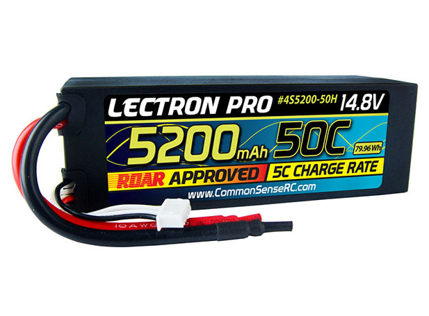 This 14.8V (4S) 5200mAh 50C lithium polymer battery pack features a hard outer case and is the perfect size and shape for use in tons of 1/8-scale buggies and trucks. With a 50C continuous discharge rate, this lipo is built to give you elite-level performance from the most powerful brushless motor setups available.Dimensions: 138 x 47 x 48mm