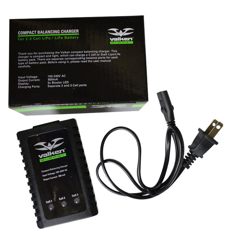 The Valken compact balancing charger is compact, light, and can charge a 2 cell or 3 cell Li-po or Li-fe battery pack. There are separate corresponding balance ports for each type of battery pack. Please read the user manual carefully before charging.Output Current: 100-240V AC