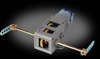 crank-axle gearbox looks very much like half of the twin-motor gearbox; it even uses the same gears. Gear it for power or speed. A FA-130