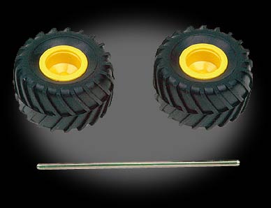 Chunky semi-pneumatic tires with high grip lug pattern tread.