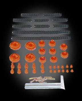 kit contains caterpillar-style tank treads, wheels and 100mm shafts. Allowing
