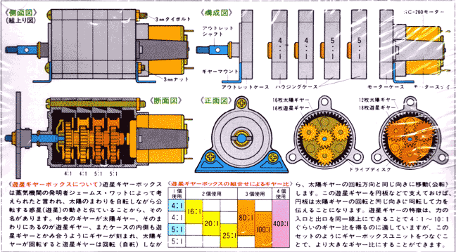 a RE-260 motor built into the gearbox. A wide range of gear ratios can