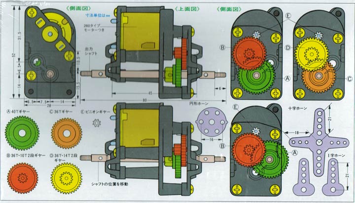 Two gear ratios are possible, and a RE-260 motor is included. Several