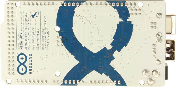 The Arduino MEGA ADK has a resettable polyfuse that protects your computer's USB ports from shorts and overcurrent. Although most computers provide their own internal protection, the fuse provides an extra layer of protection. If more than 500 mA is applied to the USB port, the fuse will automatically break the connection until the short or overload is removed.