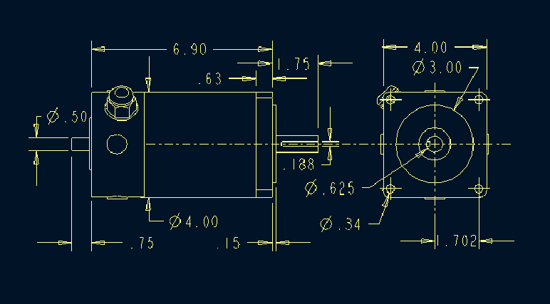 Large, high output motor. This motor is a great choice when you want BIG power that will last for long durations. Ferrite magnets. 5/8" shaft. |