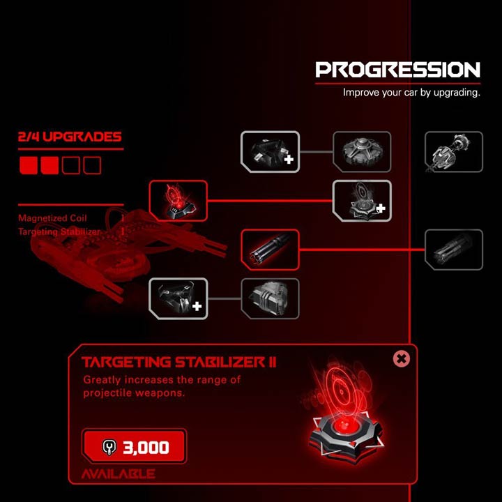Similar to a video game, your character evolves over time. The more you race, the more points you earn, which you redeem to upgrade your cars' weapons and capabilities